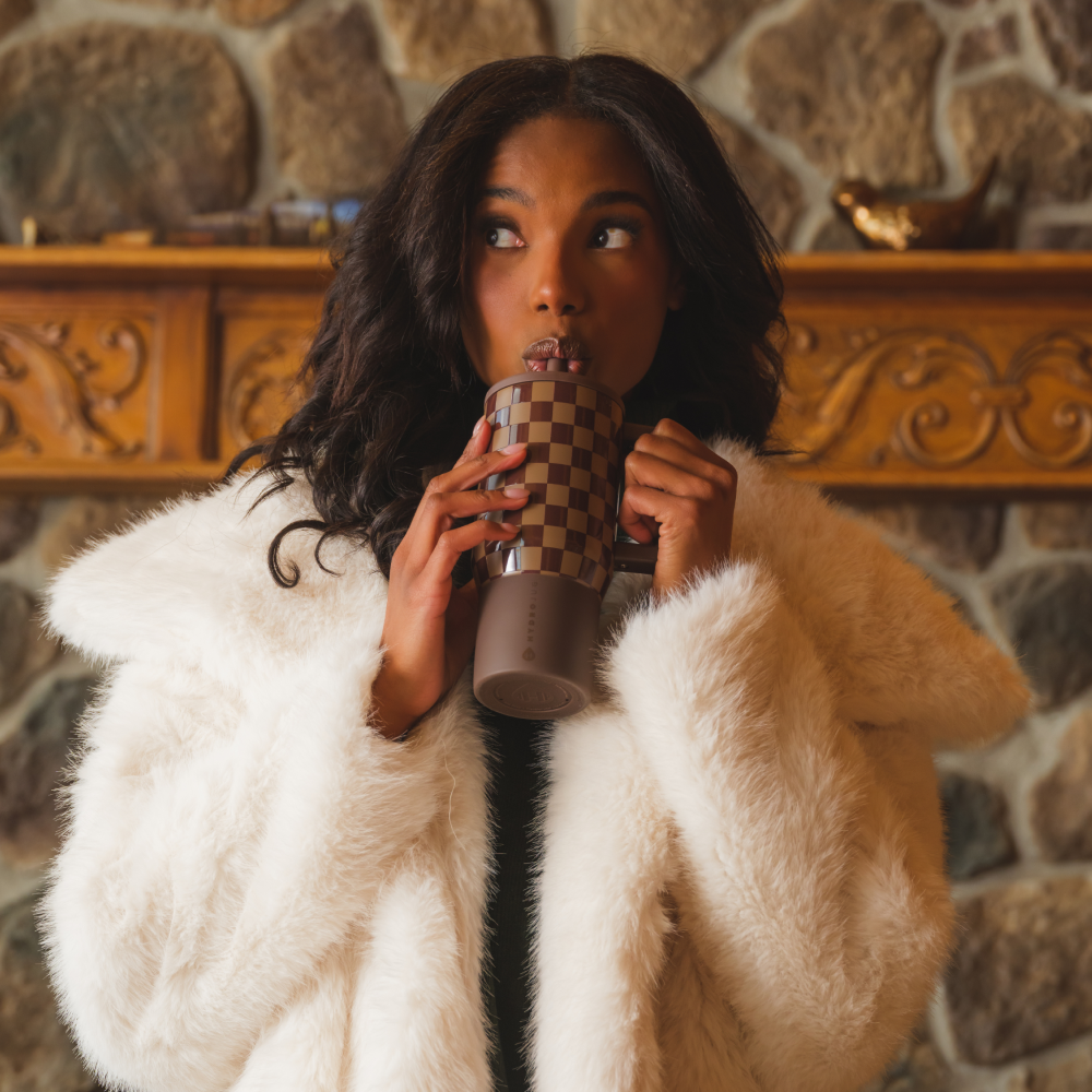 Compact, stylish, and designed for life on the move, the Traveler 20oz in Autumn Checkers makes hydration simple and fun. Its rich brown checkerboard pattern adds a playful yet polished look, perfect for school, the office, or weekend outings. At 20oz, this tumbler is the smallest in the lineup ��� lightweight, easy to pack, and perfectly sized for backpacks, handbags, or standard cup holders. Despite its compact design, it still delivers reliable hydration throughout your day. Crafted from triple-wall insulated stainless steel, it keeps drinks cold for hours without condensation. Built with the same trusted features as larger sizes, the Autumn Checkers travel tumbler includes a leakproof flip-straw lid for smooth sipping, a tapered base for cupholder compatibility, and an ergonomic handle for easy carrying. A removable silicone boot protects the insulated bottle and surfaces from scratches, while the dishwasher-safe body ensures quick, convenient cleaning. With its unique pattern and practical design, the Autumn Checkers water bottle is hydration that���s compact, dependable, and always ready to go wherever your day takes you. Dimensions: 3.35" x 4.78" x 7.62" Base diameter: 2.76" Capacity: 20 ounces of water ~ 592 mL Weight: 14.72oz