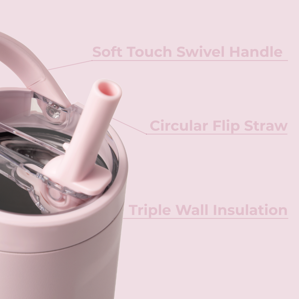 Designed for active lifestyles, the Sport 32oz in Pink Sand delivers reliable hydration in a clean, blush-toned finish. Practical and versatile, it���s built to support training sessions, commutes, and everyday routines with ease. The 32oz size tumbler provides the perfect middle ground ��� large enough to keep hydration steady through busy days, yet lightweight and portable for grab-and-go use. Made from 18/8 stainless steel with triple-wall insulation, the Pink Sand water bottle keeps drinks cold for hours, and its dishwasher-safe design makes cleanup simple. Engineered for performance, it���s completely leakproof with the straw down, equipped with a circular flip straw for smooth sipping, and shaped with a cupholder-friendly tapered base. Ergonomic side grips provide a comfortable hold during activity, while the bucket handle and protective rubber base add durability and everyday convenience. Durable, practical, and dependable, the Sport bottle is hydration designed for movement, performance, and wellness. Dimensions: 3.65" x 3.65" x 10" Base diameter: 2.92" Capacity: 32 ounces of water ~ 946 mL Weight: 16oz